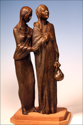 'Naomi and Ruth' by Hagar. 32 cm x 18 cm x 18 cm. Cast Bronze. © 2026