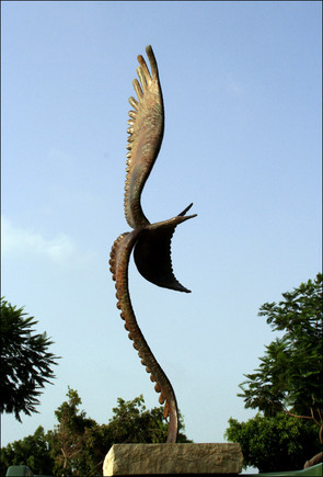 'Bird in Wind' by Hagar. 104 cm x 29 cm x 25 cm. Cast Bronze. © 2026